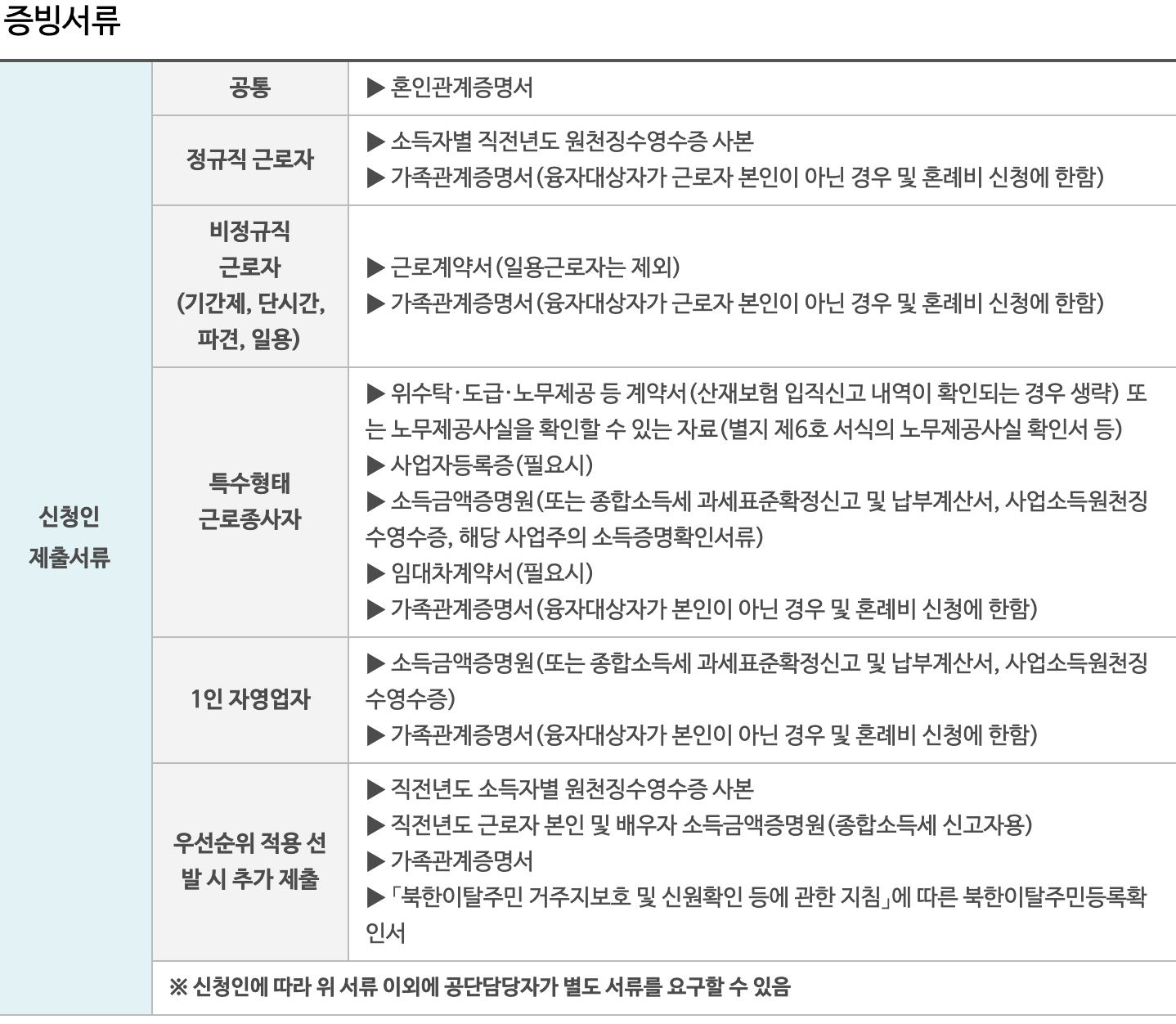 - 비정규직 근로자는 소득요건을 적용하지 않음
