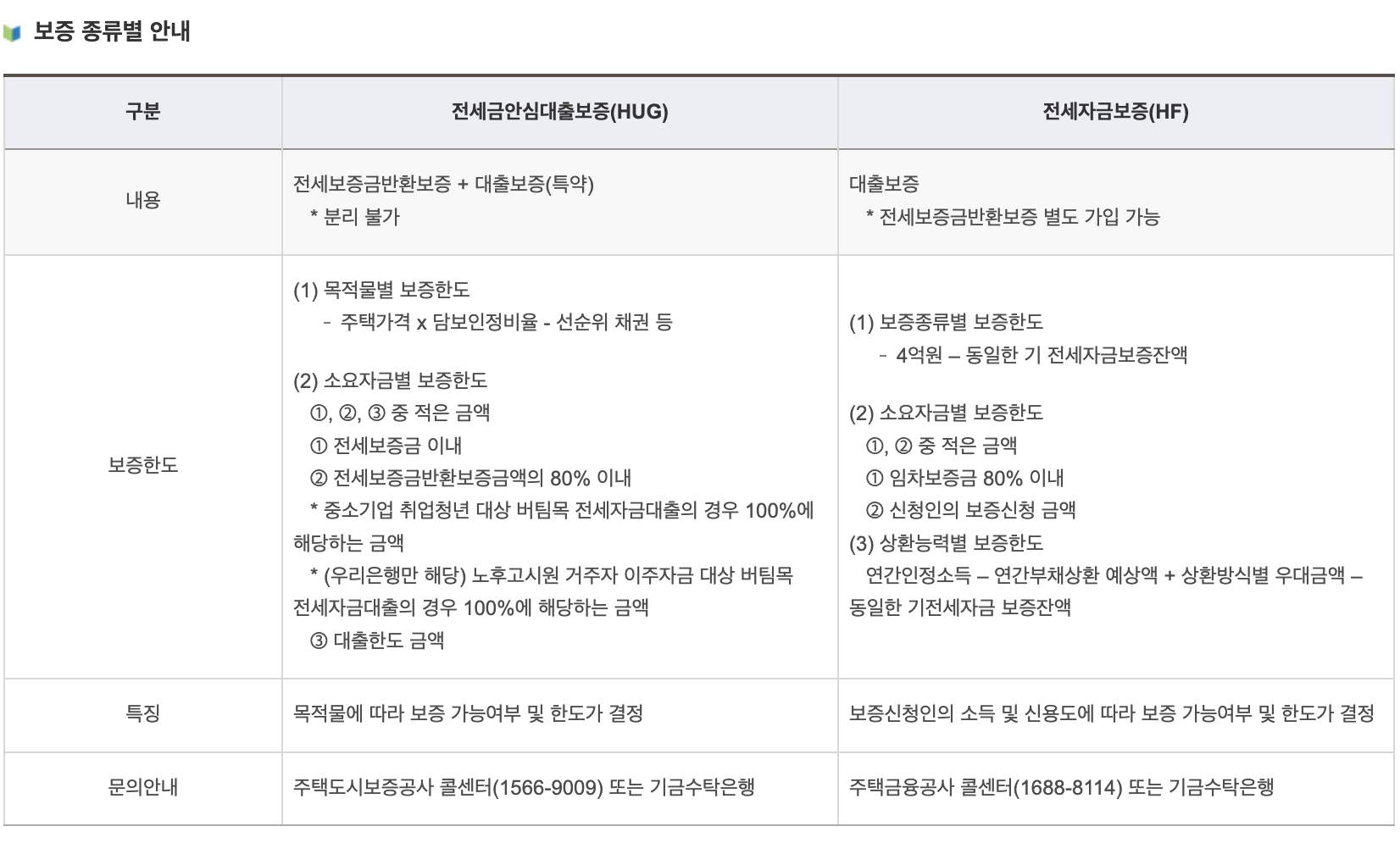 - 소득이 적다면 HUG보증 한도가 더 높지만, 보증 조건이 까다로워서 집 구하는 난이도가 높다