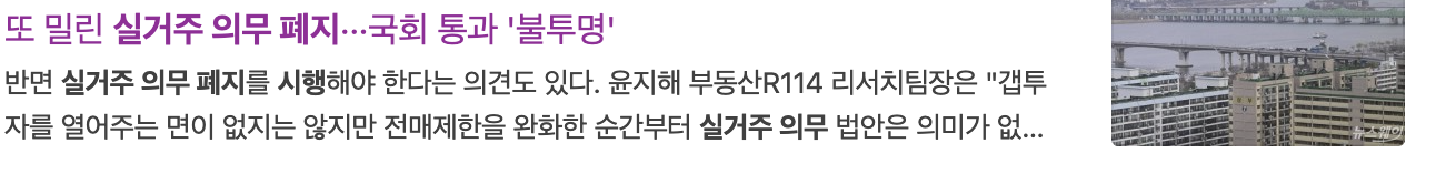 실거주 의무폐지는 두 의견이 대립중이어서 통과되지 않고 있다.
