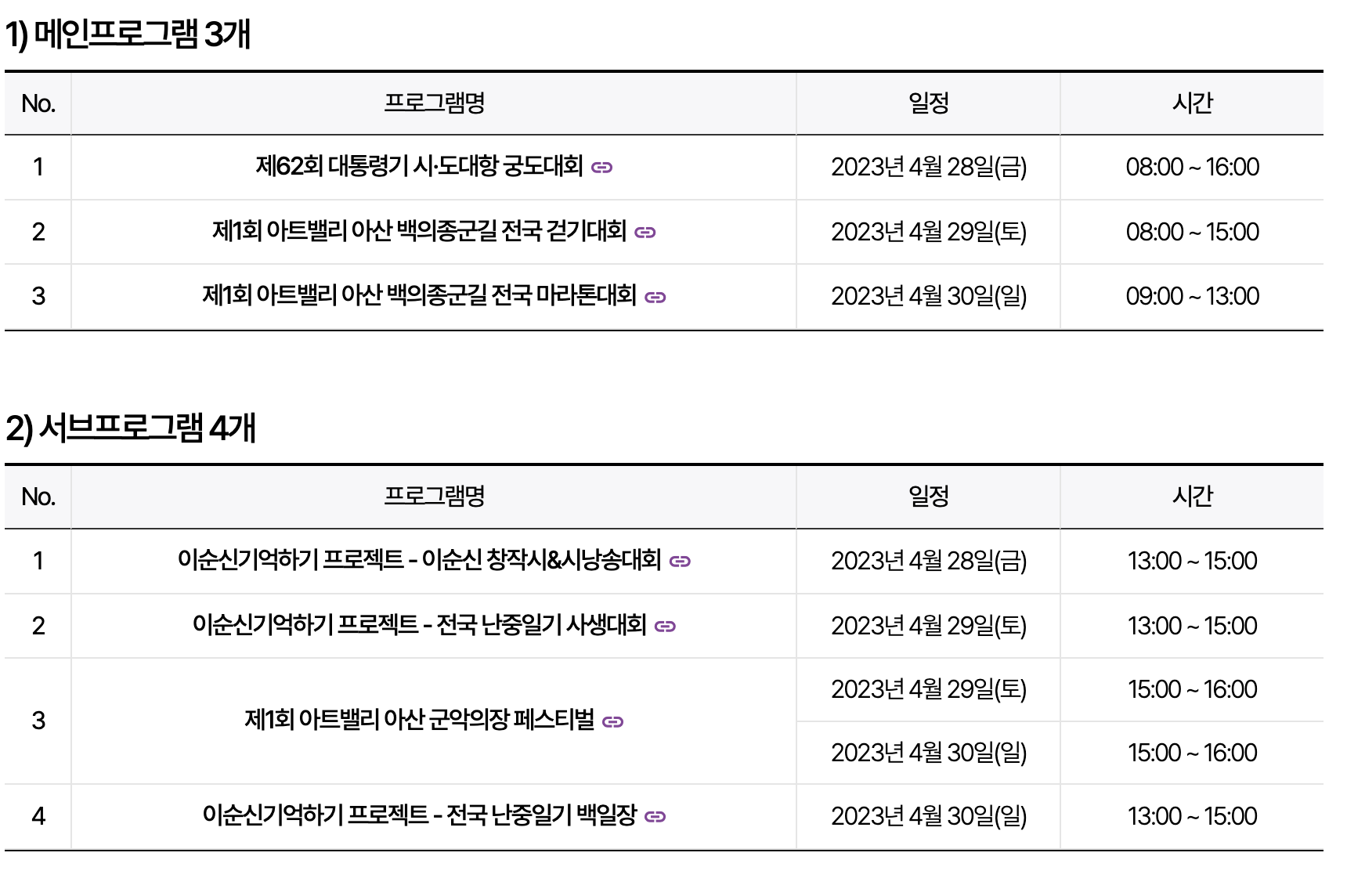 이순신 장군을 테마로 진행되는 충남 아산의 오래된 성웅이순신축제 많은 프로그램들이 준비되어 있으니 행사 시간과 장소를 확인해 축제를 즐겨보시기 바랍니다.