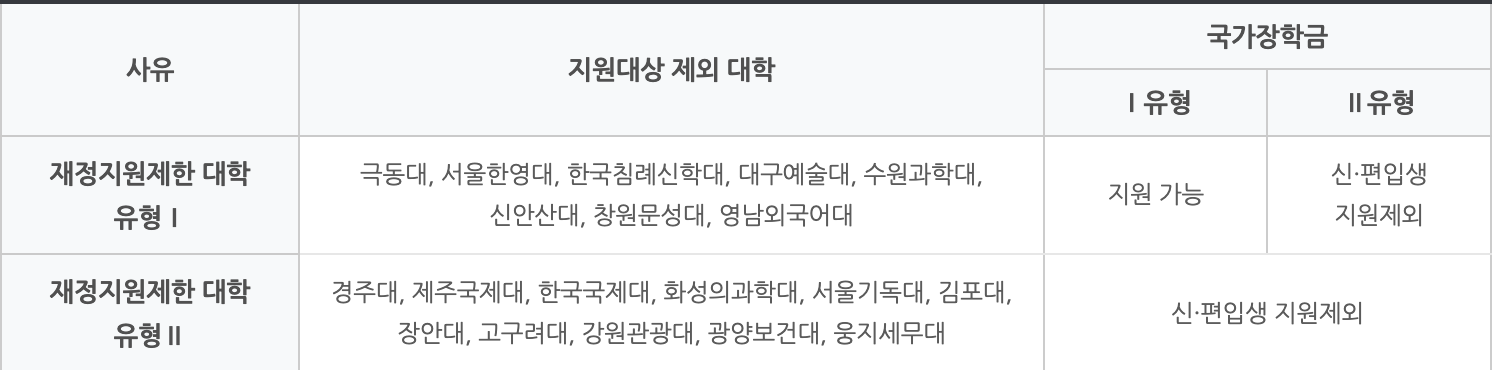 정부재정지원제한대학(19개교)의 ’ 23학년도 신·편입학생은 국가장학금 지원 대상에서 제외