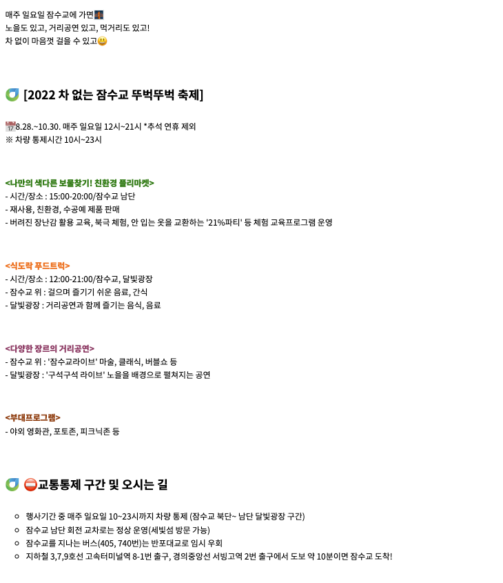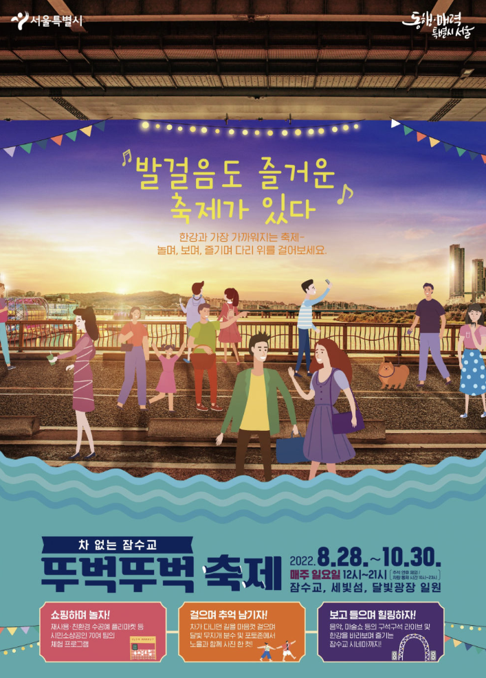 반포한강공원에서 '차 없는 잠수교 뚜벅뚜벅 축제'와 연계하여 진행됩니다.