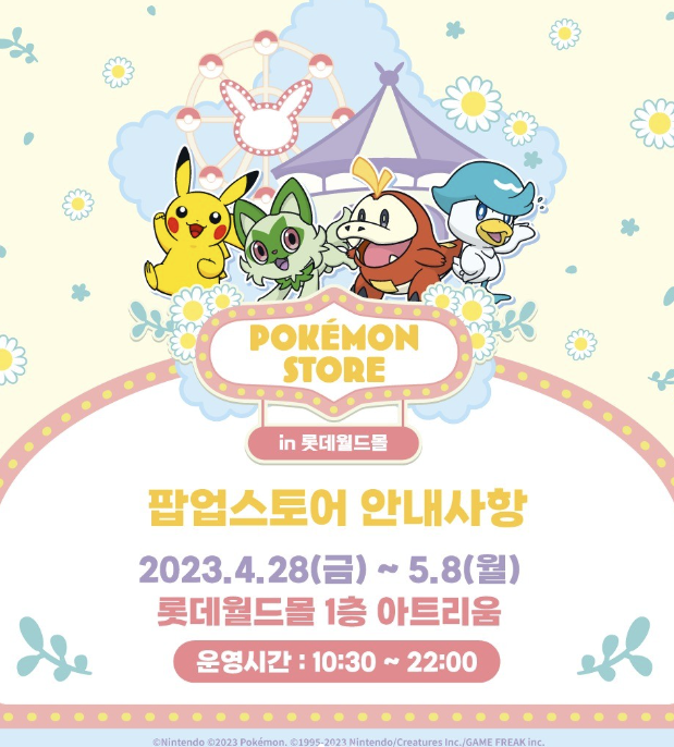 1층에 팝업스토어가 운영중이며, 1층 야외 월드파크에서 포켓몬으로 쫙 깔려있습니다.