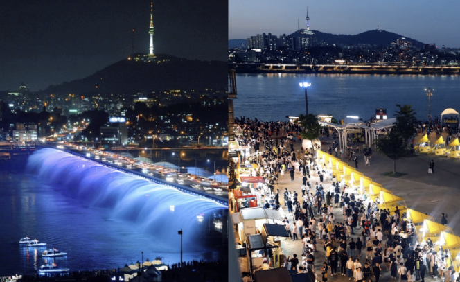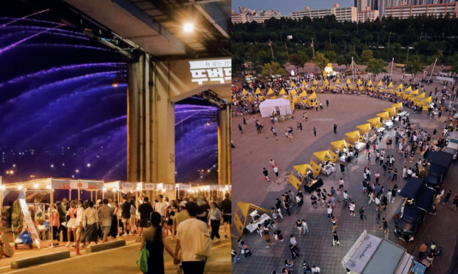 달빛야시장이랑 연계된 한강 뚜벅뚜벅축제, 잠수교위를 걸으며, 간식, 거리공연을 즐겨보세요