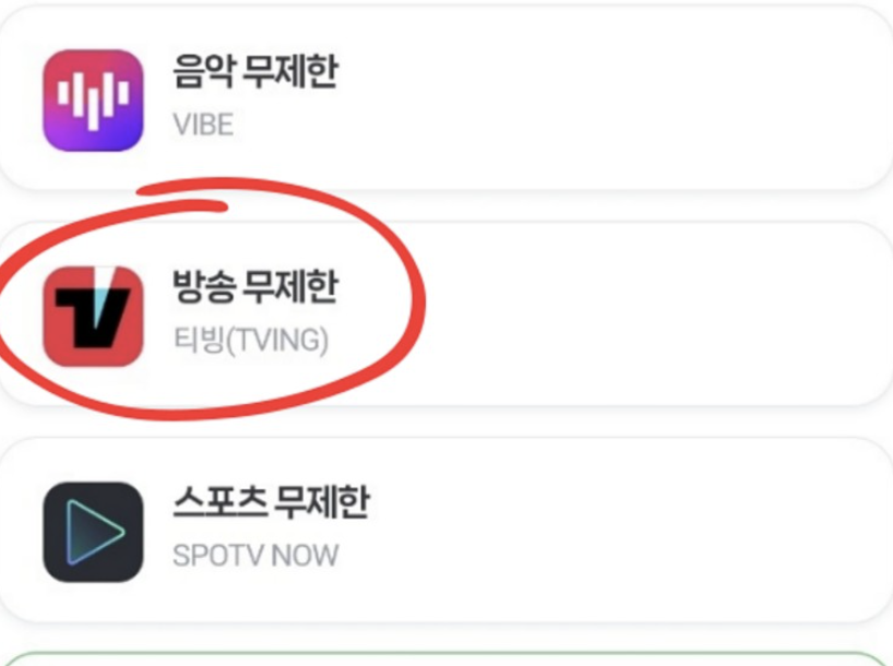 3. 티빙 방송 무제한을 선택합니다.