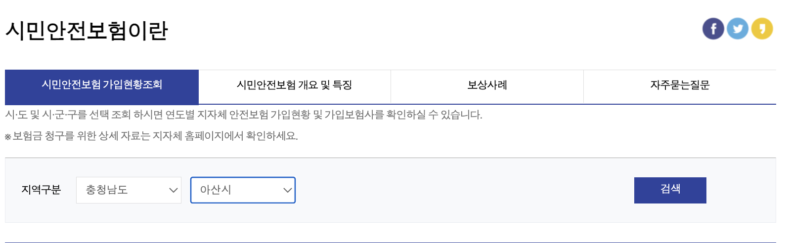 시민안전보험 가입현황조회 - 시도 / 시군구선택 - 검색 및 조회하기