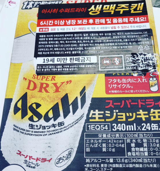 아사히 생맥주 캔은 홈플러스, 롯데마트, 코스트코, 세븐일레븐, GS25, CU, 이마트24 편의점 7곳입니다. 수입된 제품은 340ml 용량이며, 6kcal, 알코올 농도는 5%입니다.