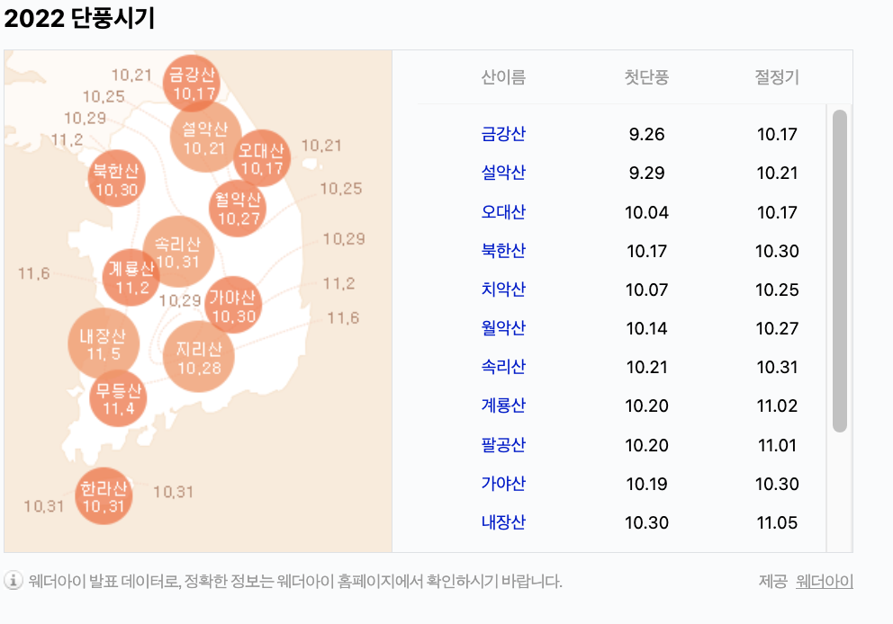 2022년을 참고해서 2023년 단풍시기를 예상해보겠습니다.