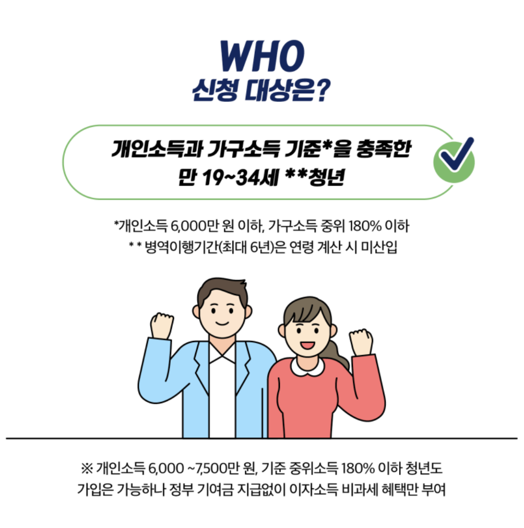 대상 : 19세 ~ 34세 이하 청년(병역기간 최대 6년 제외)