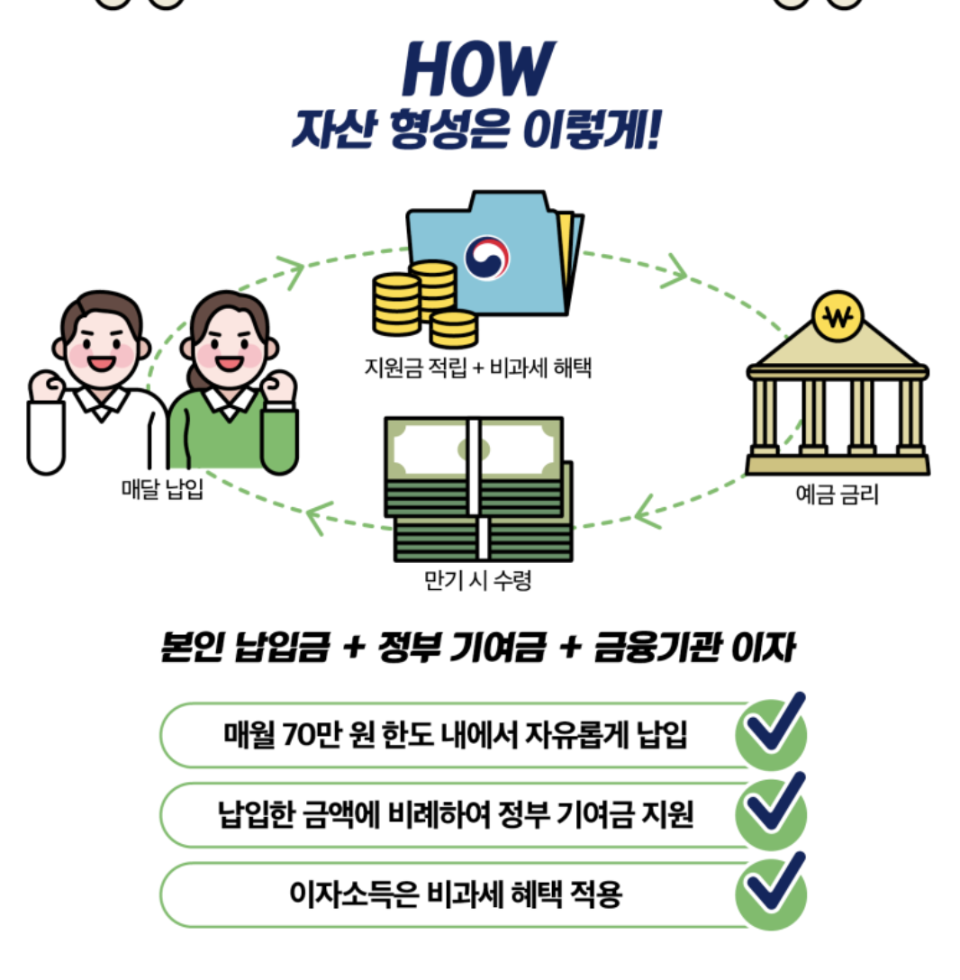 청년들의 자산 형성을 지원하는 정책형 금융 상품으로 매달 일정 금액을 5년간 납입하면 정부 지원금과 은행 이자를 더한 금액을 만기 시 수령가능하며, 현 정부의 주요 국정과제로 청년들의 중자기적 자산형성을 지원하기 위해 추진되었습니다. 2023년 청년도약계좌 예산 3,678억원으로 편성됨