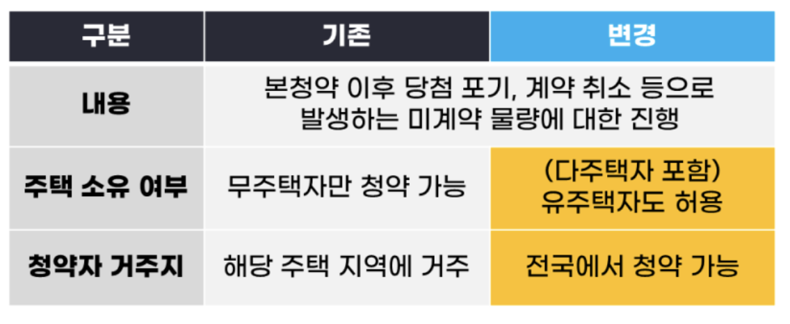 무순위 청약 거주지역 요건폐지(22년 11월)