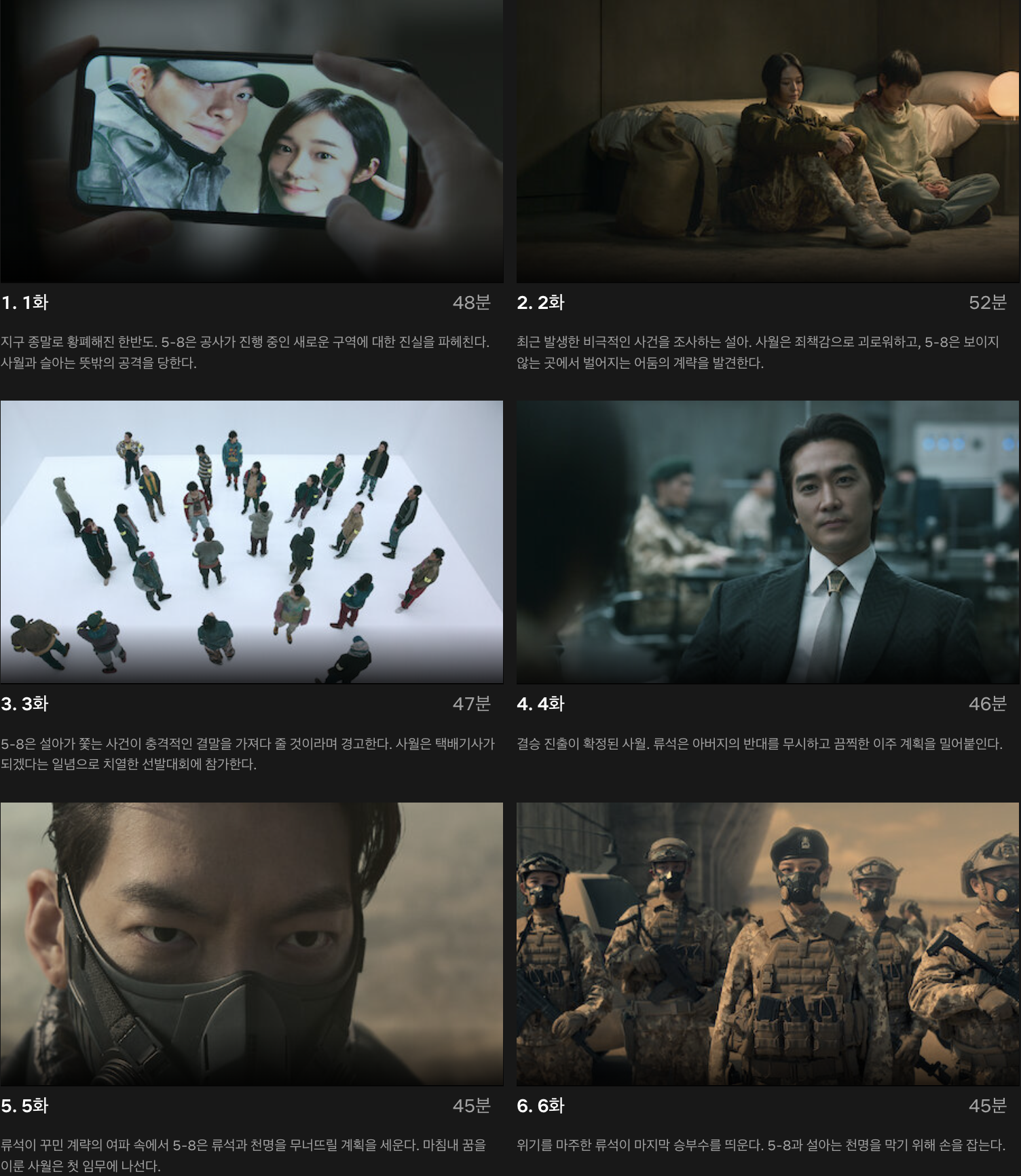 총 6개의 에피소드로 구성, 총 278분의 러닝타임. 5월 12일 부터 넷플릭스에서 감상할수 있습니다.