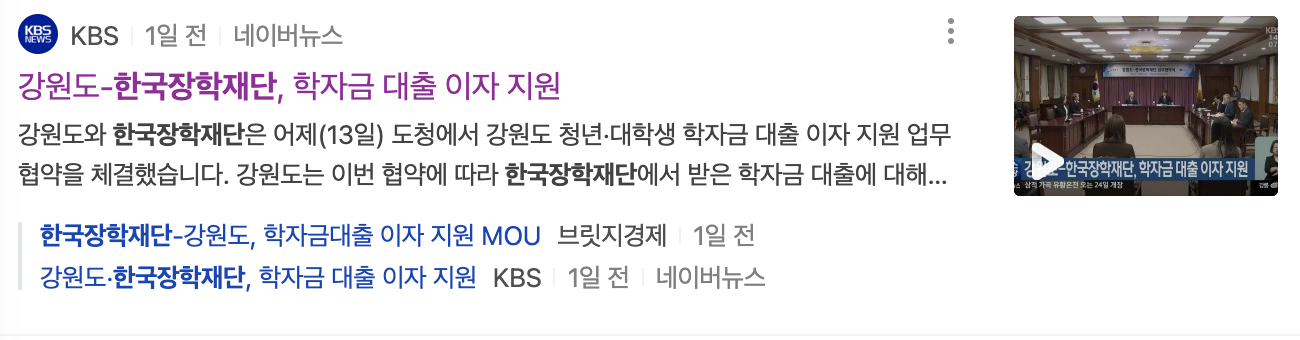 강원도와 한국장학재단은 23년 2월 13일 강원도 청년, 대학생학자금대출 이자 지원 업무협약을 체결했다.