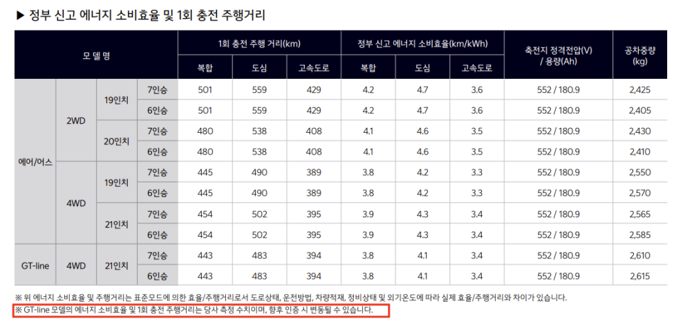 EV9의 1회 충전시 2륜 기준 501KM이고 최대 모터 출력은 150kW입니다.